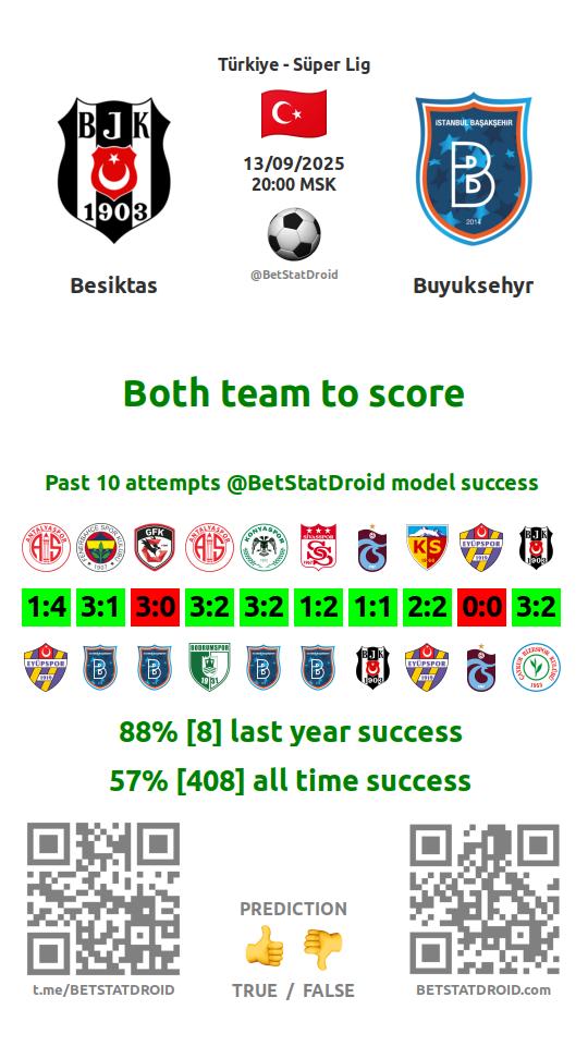 ✔ Besiktas lost under 2,5 goals in each of 13 last games