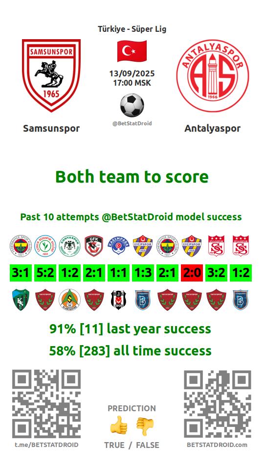 ✔ Samsunspor lost under 2,5 goals in each of 15 last games