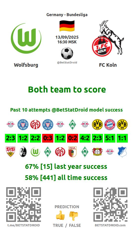 ✔ Wolfsburg scores under 2,5 goals in each of 9 last games