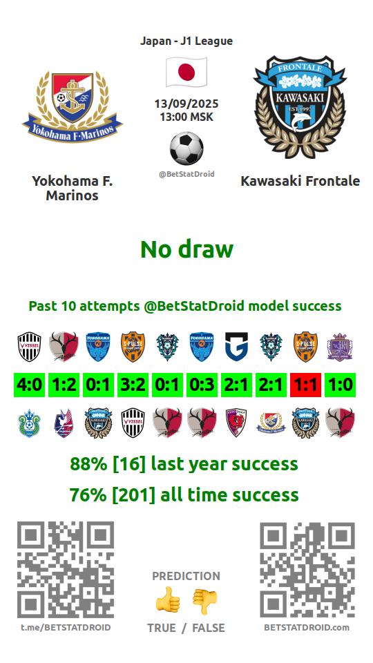 ✔ Yokohama F. Marinos lost under 1,5 goals in each of 7 last games