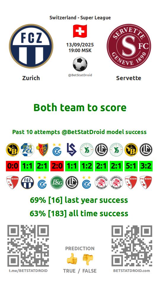 ✔ Zurich scores under 2,5 goals in each of 9 last games