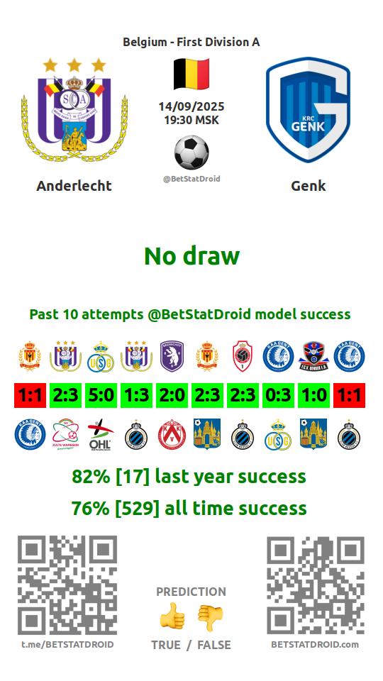✔ Anderlecht scores under 2,5 goals in each of 15 last games