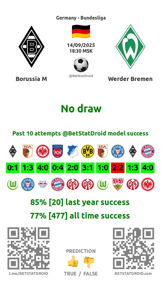 ✔ Werder Bremen scores under 2,5 goals in each of 13 last games
