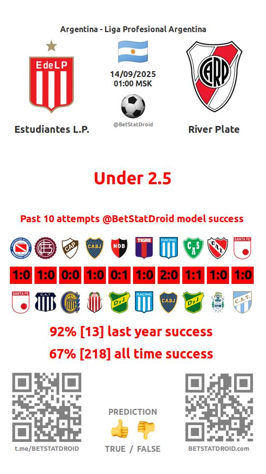 ✔ River Plate lost under 2,5 goals in each of 52 last games