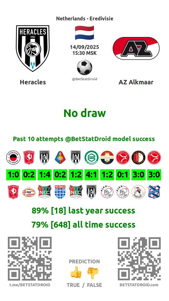 ✔ Heracles scores under 2,5 goals in each of 14 last games