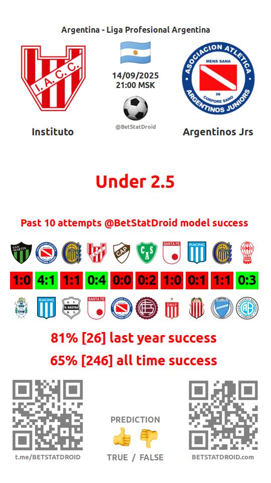 ✔ Instituto scores under 2,5 goals in each of 11 last games