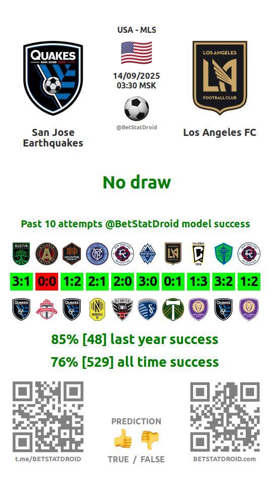 ✔ San Jose Earthquakes scores over 1,5 goals in each of 6 last games