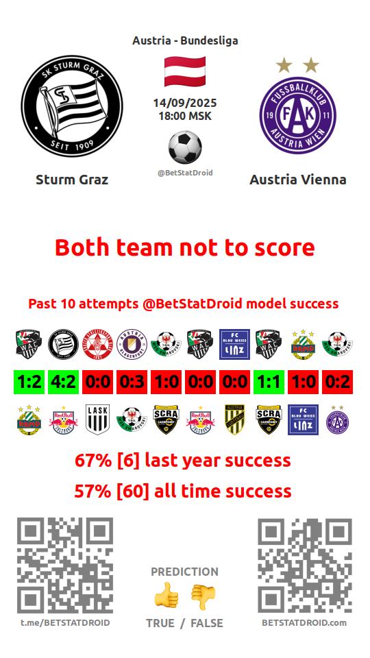 ✔ Austria Vienna scores under 2,5 goals in each of 9 last games