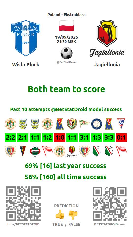 ✔ Wisla Plock scores under 2,5 goals in each of 19 last games