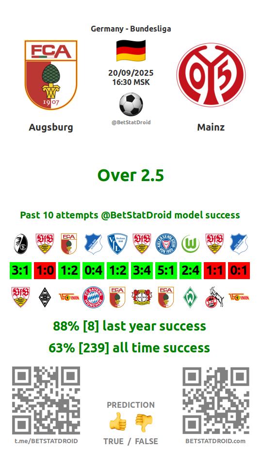✔ Augsburg scores under 2,5 goals in each of 16 last games