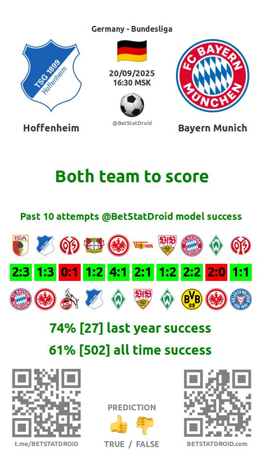 ✔ Hoffenheim scores under 2,5 goals in each of 12 last games