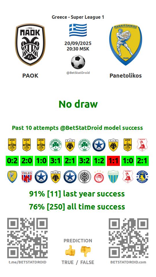 ✔ Panetolikos scores under 1,5 goals in each of 20 last games