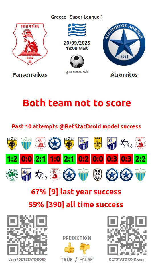 ✔ Panserraikos scores under 1,5 goals in each of 6 last games