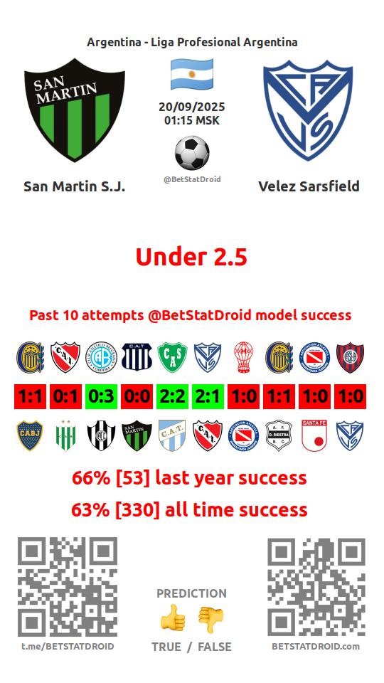 ✔ San Martin S.J. lost under 2,5 goals in each of 8 last games
