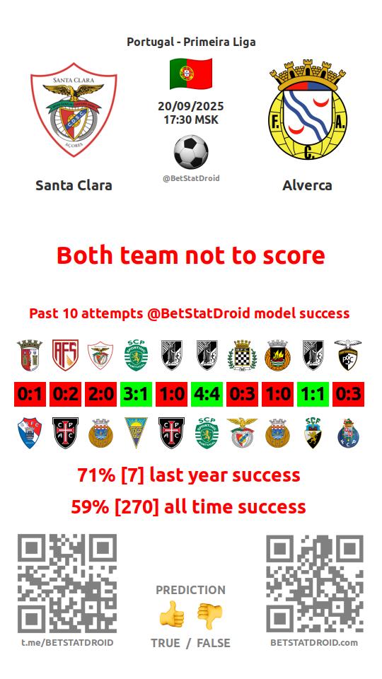 ✔ Santa Clara scores under 2,5 goals in each of 20 last games