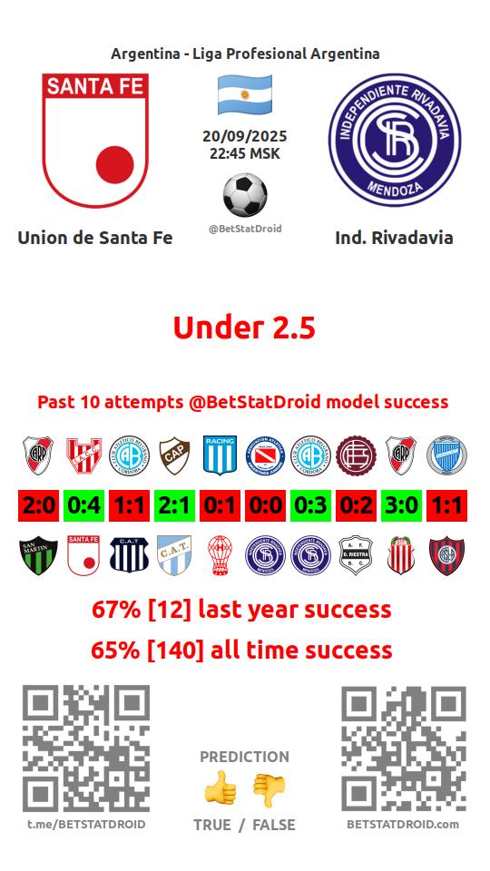 ✔ Union de Santa Fe lost under 2,5 goals in each of 13 last games