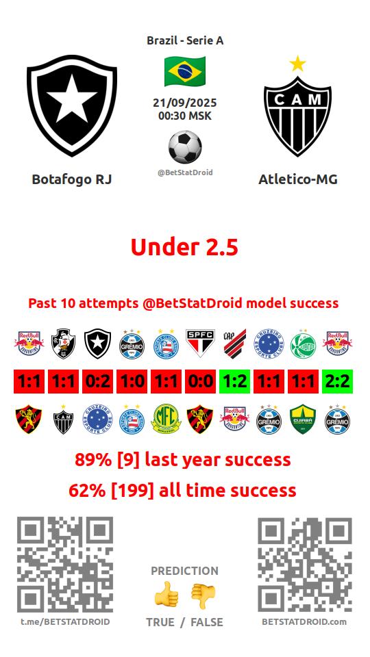 ✔ Atletico-MG scores under 2,5 goals in each of 20 last games