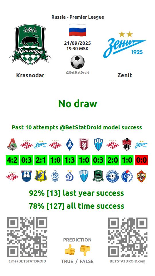 ✔ Krasnodar lost under 1,5 goals in each of 6 last games
