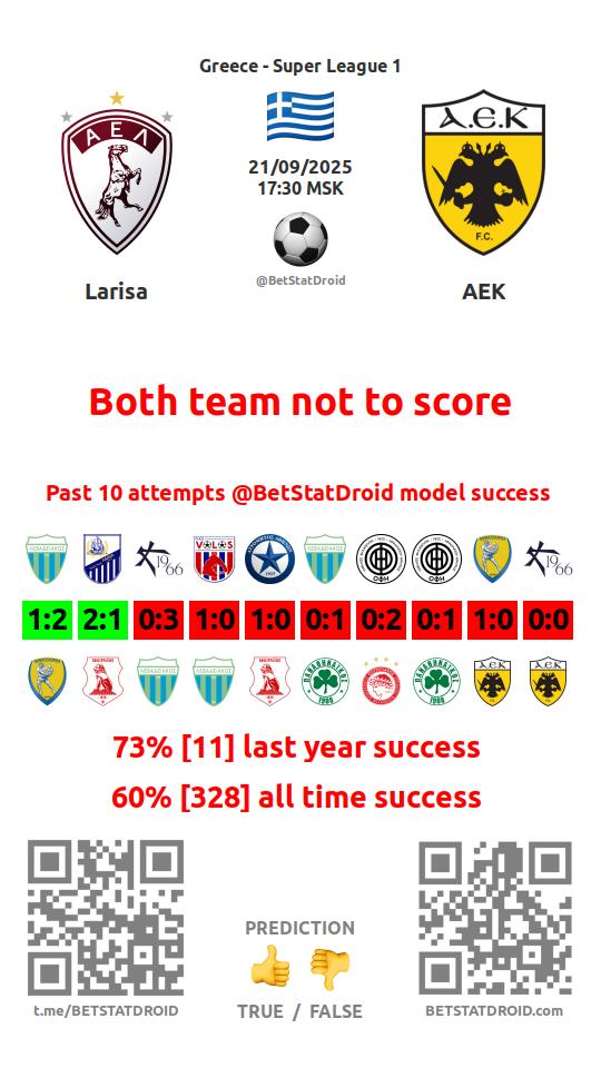 ✔ Larisa scores under 2,5 goals in each of 12 last games