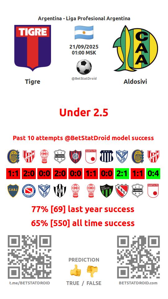 ✔ Tigre scores under 2,5 goals in each of 19 last games