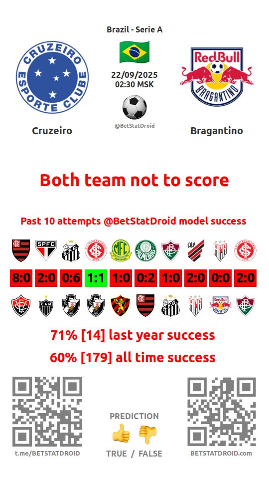 ✔ Cruzeiro lost under 2,5 goals in each of 60 last games