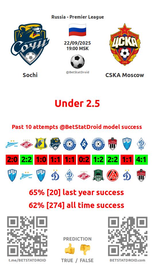 ✔ Sochi scores under 2,5 goals in each of 10 last games