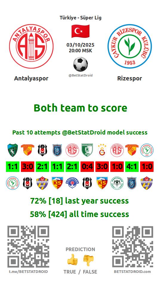 ✔ Antalyaspor lost under 2,5 goals in each of 10 last games