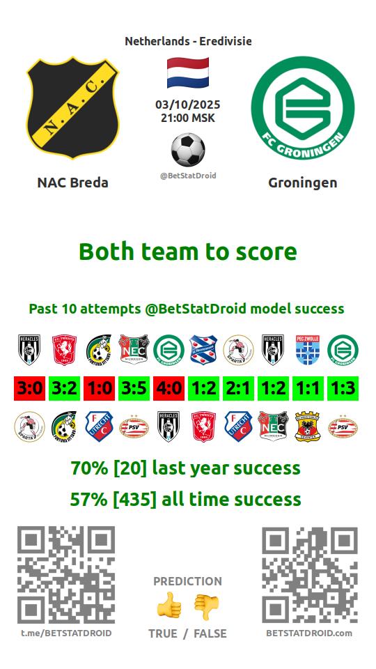 ✔ NAC Breda scores under 2,5 goals in each of 31 last games