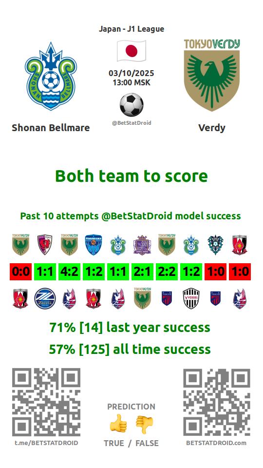 ✔ Verdy scores under 1,5 goals in each of 13 last games