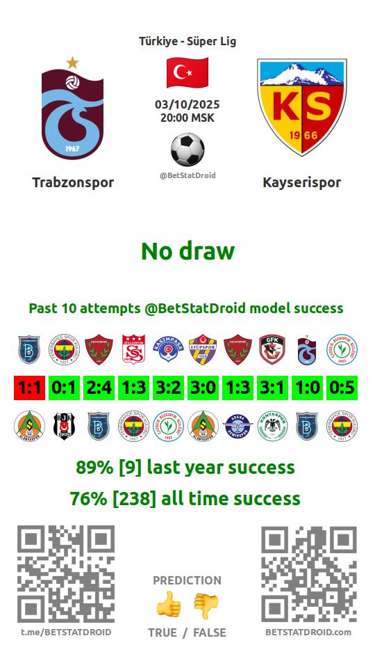 ✔ Kayserispor scores under 2,5 goals in each of 10 last games