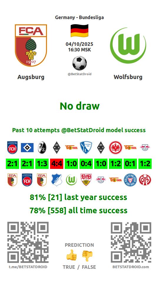 ✔ Augsburg scores under 2,5 goals in each of 17 last games