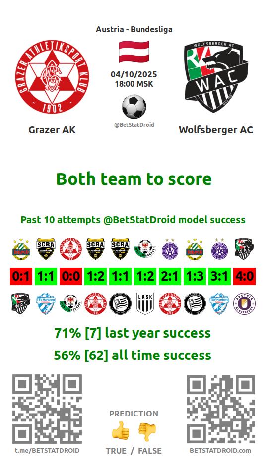 ✔ Wolfsberger AC scores under 2,5 goals in each of 9 last games