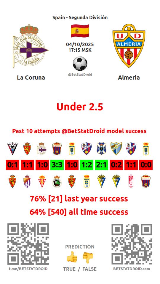 ✔ Almeria scores under 2,5 goals in each of 13 last games