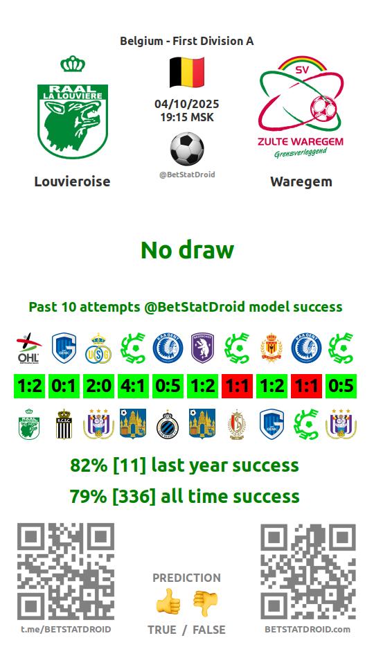 ✔ Louvieroise scores under 2,5 goals in each of 22 last games