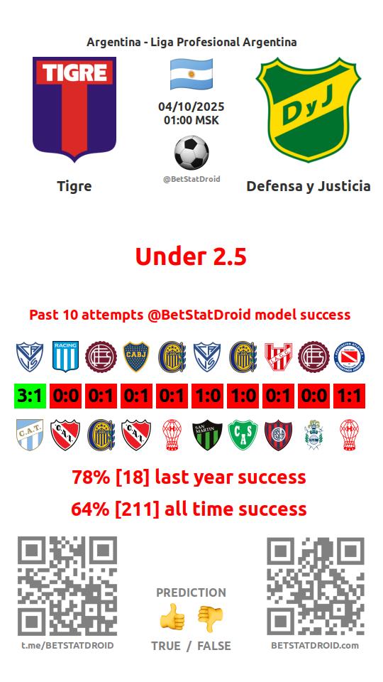 ✔ Tigre lost under 2,5 goals in each of 32 last games