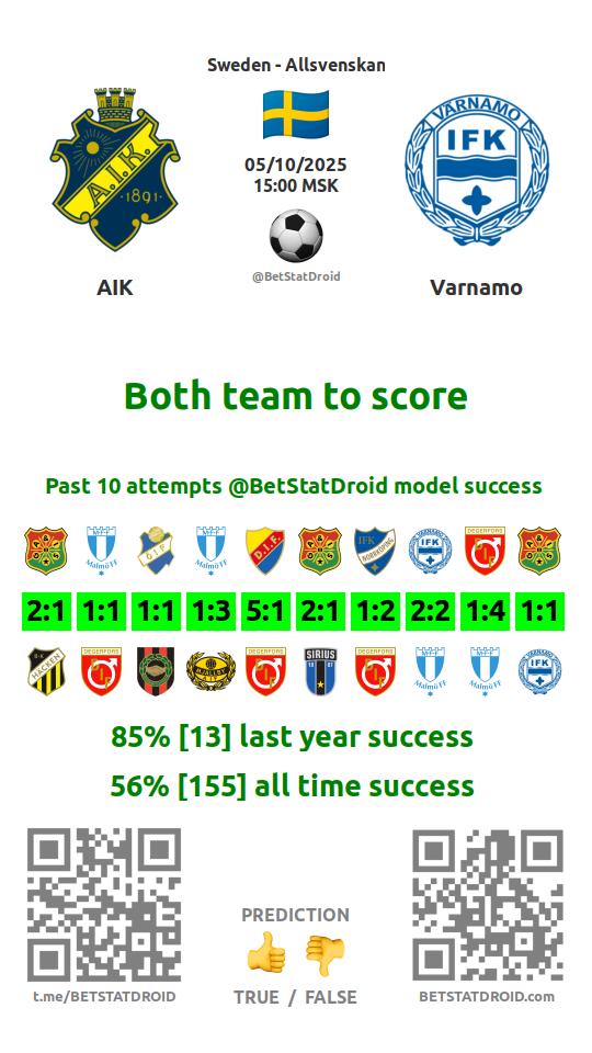 ✔ AIK lost under 1,5 goals in each of 11 last games