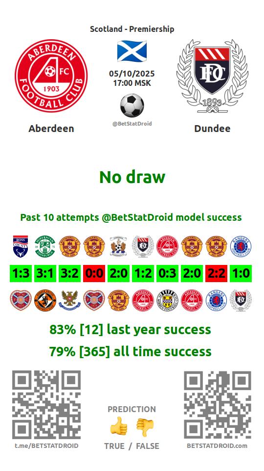 ✔ Aberdeen scores under 1,5 goals in each of 5 last games