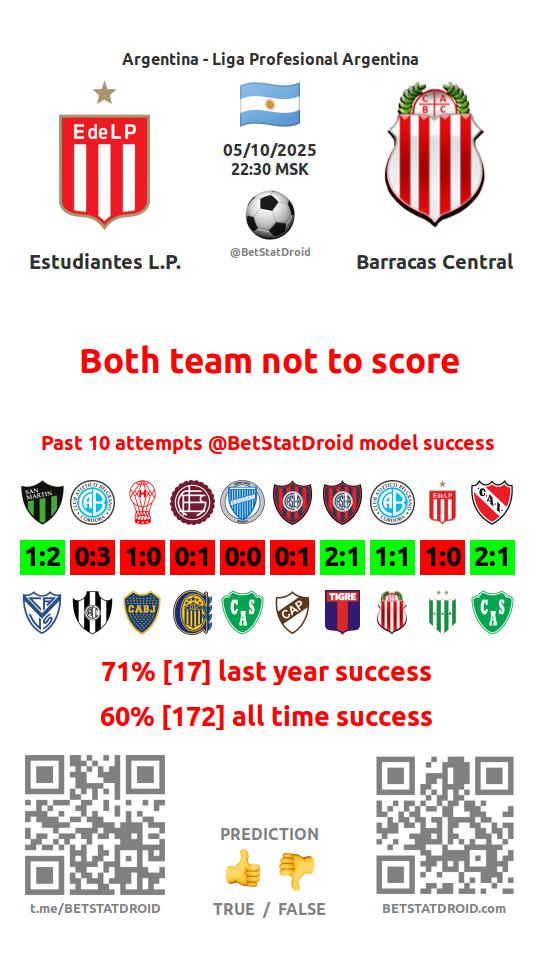 ✔ Barracas Central lost under 1,5 goals in each of 5 last games