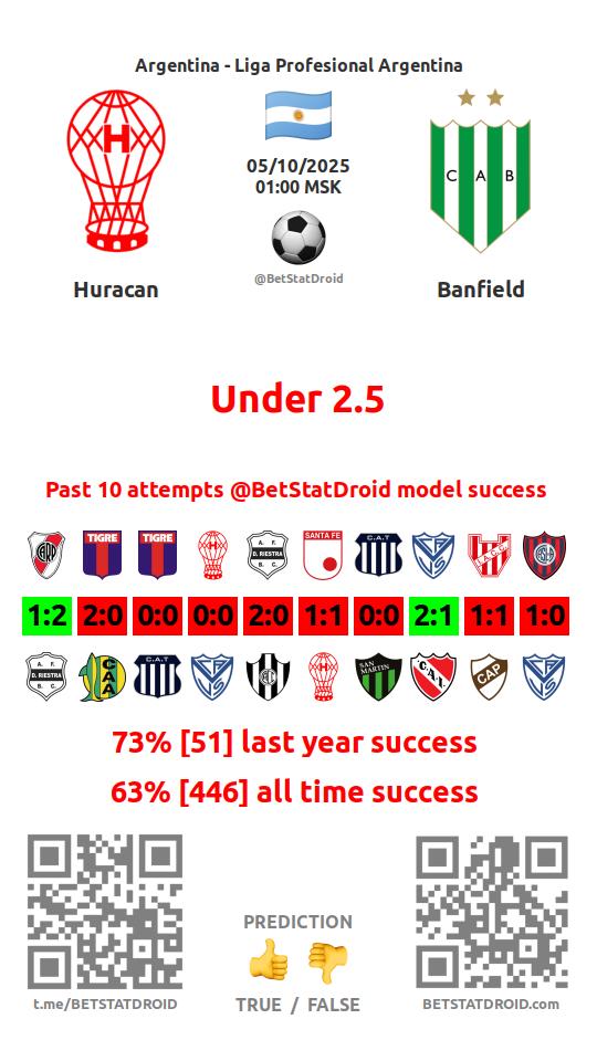 ✔ Huracan scores under 2,5 goals in each of 13 last games