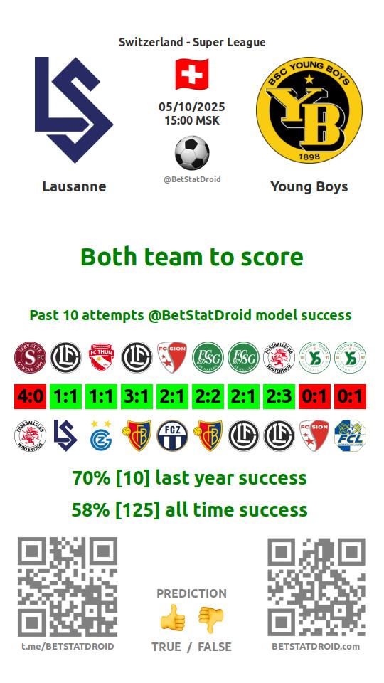 ✔ Lausanne scores under 1,5 goals in each of 6 last games