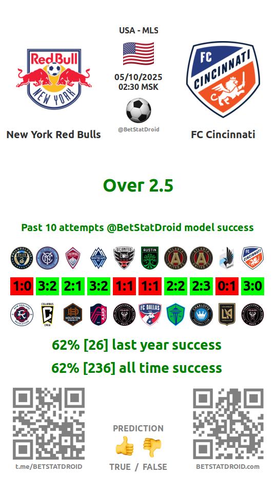 ✔ FC Cincinnati lost under 2,5 goals in each of 10 last games