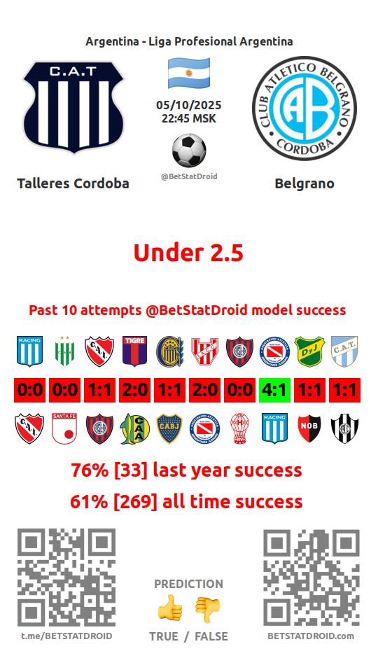 ✔ Talleres Cordoba scores under 2,5 goals in each of 28 last games
