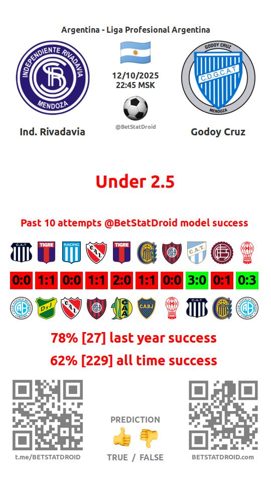 ✔ Ind. Rivadavia scores under 2,5 goals in each of 9 last games