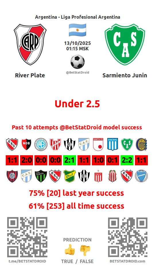 ✔ River Plate lost under 2,5 goals in each of 30 last games