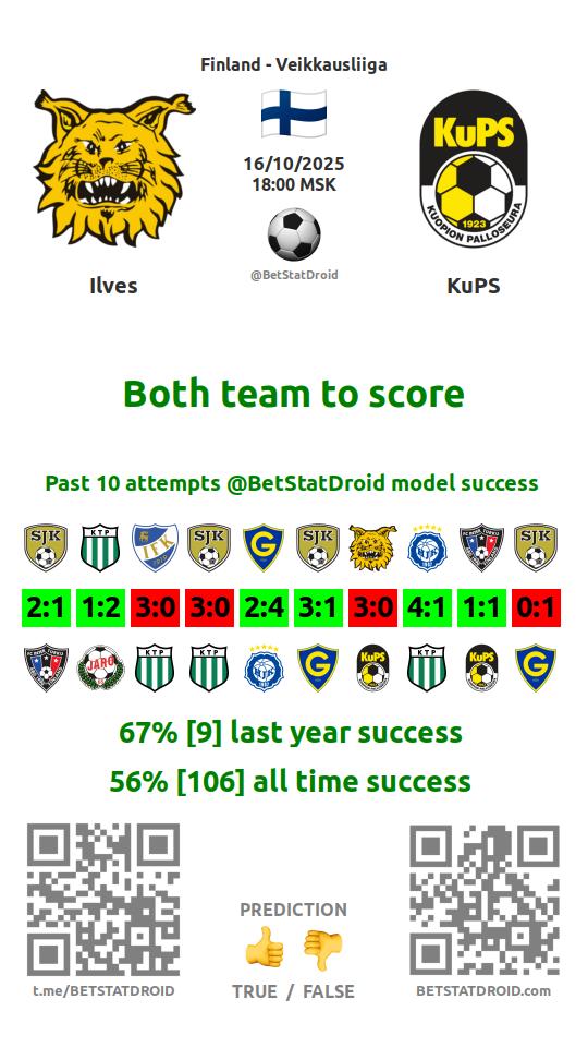 ✔ KuPS lost under 2,5 goals in each of 9 last games