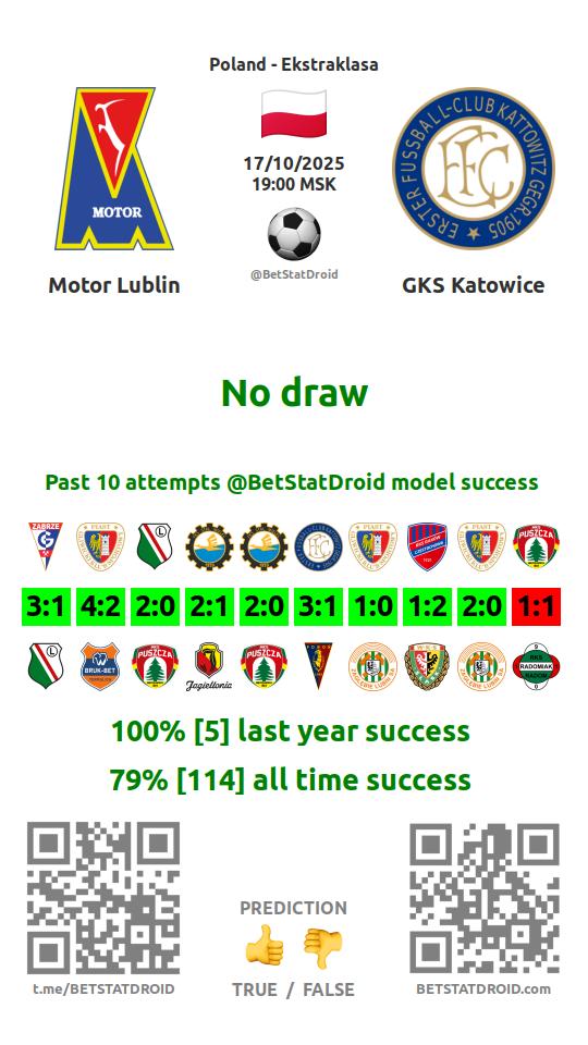 ✔ Motor Lublin scores under 2,5 goals in each of 8 last games