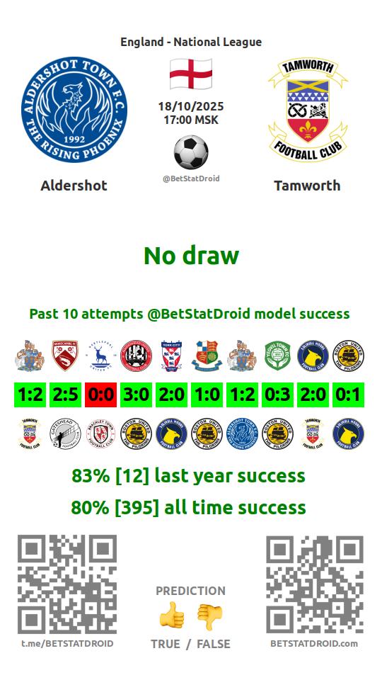 ✔ Aldershot scores under 2,5 goals in each of 8 last games