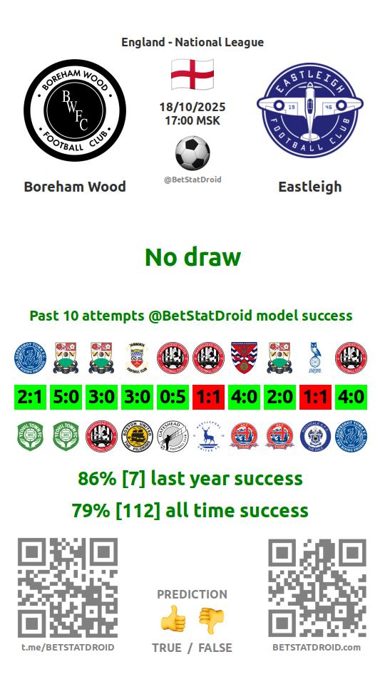 ✔ Boreham Wood scores in each of 8 last games