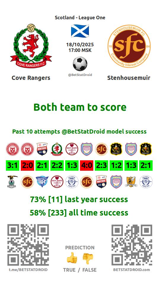 ✔ Cove Rangers scores under 1,5 goals in each of 6 last games