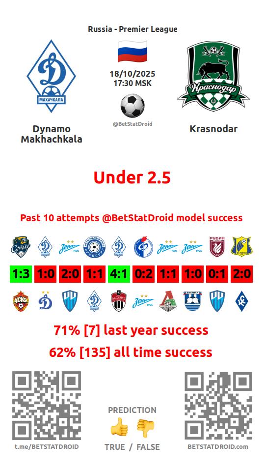 ✔ Dynamo Makhachkala scores under 2,5 goals in each of 18 last games